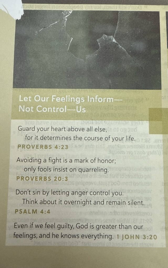 A video came across my feed explaining how having Joy is better to have than going based off how you’re feeling. I kept thinking “Well how can we not base certain events off feelings? Feelings are important when it comes to someone hurting you”. Yes, that is true but feeling are not meant to dictate every decision we make. In my Bible there are pages that show important quotes as you read. A quote that I loved was in the scriptures of deep hard feelings and how God handles them. The quote paraphrased “Feelings are indications not decisions”